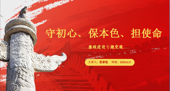 最后,结合学院工作实际,纪委书记崔泰铭给大家讲授了“守初心、保本色、担使命”廉政建设专题党课,要求全体纪委成员一是守初心,守住胸怀忠诚的赤子之心;二是保本色,牢记干净的底线要求;三是担使命,保持担当的奋斗姿态。