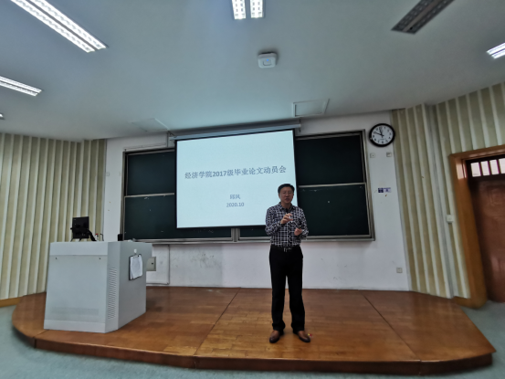 10月27日下午,我院在学院楼311教室举行了2021届本科毕业生毕业论文动员大会。经济学专业负责人邱风教授担任本次大会的主讲,指导学生如何撰写本科毕业论文。