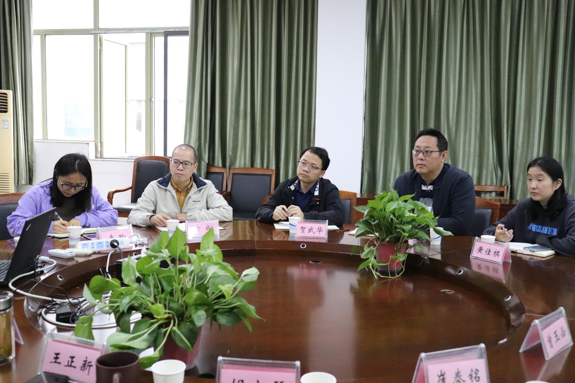 王正新院长代表学院热烈欢迎贺武华处长一行来我院调研指导工作,并简要介绍了我院的整体情况。教学院长邓晓军从教学组织架构、学生人数及分布、教师数量及归属、课程门数及分类、国家级与省级一流课程、省级以上教改项目等方面对我院的本科教学情况做了具体汇报,并反馈了创新班教学师资配备与本科生综合导师选择等教学方面存在的问题。崔泰铭副书记结合学生管理工作介绍了我院本科招生及学科竞赛等情况,并期望教务处在统一考试安排与学科竞赛分级等方面予以支持。