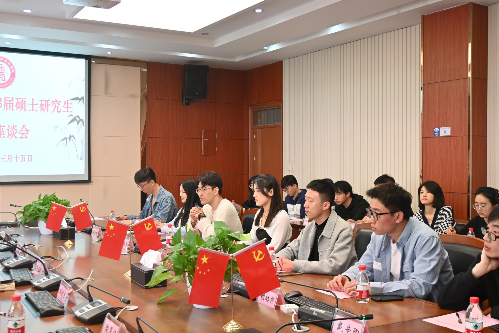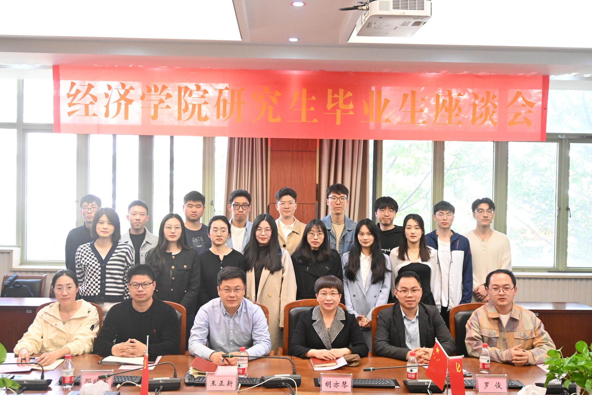 3月15日上午,我院2023届硕士研究生毕业座谈会在学院楼210会议室举行。院长王正新、党委书记胡亦琴、副院长罗俊、邓晓军、研究生秘书陶恩情,以及辅导员俞一献与16位硕士研究生代表齐聚一堂,共话经院学习生活的感悟收获,畅谈人生未来的发展规划。会议由副院长罗俊主持。