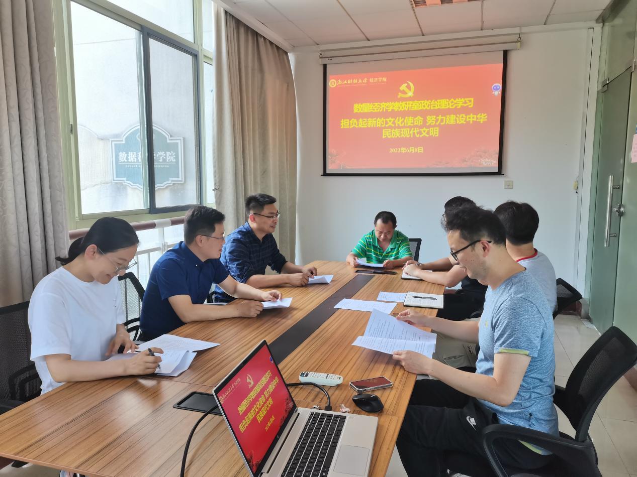 政治理论学习的主旨是《担负起新的文化使命,努力建设中华民族现代文明》。与会老师一起学习了习近平总书记关于新时代中国特色社会主义思想主题教育工作会议上的讲话。在如何在教学工作中践行主题教育先进理念,与会老师纷纷分享了自己的心得。通过本次政治理论学习,大家提高了思想认识,并将其落实到今后的教学和学生培养工作上。