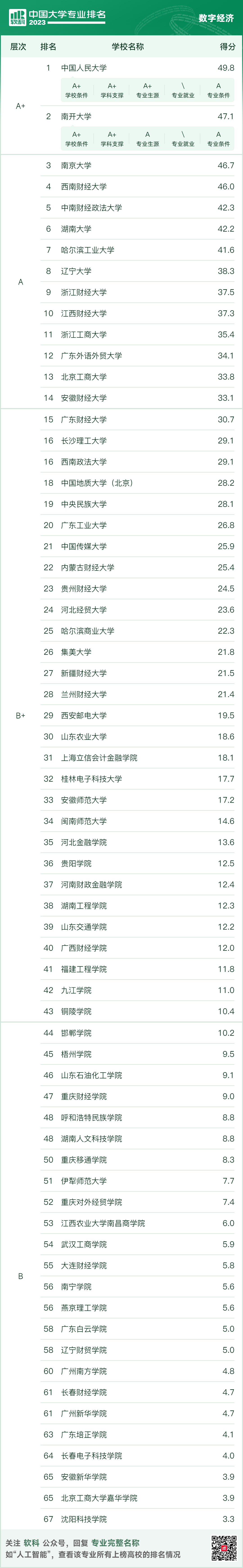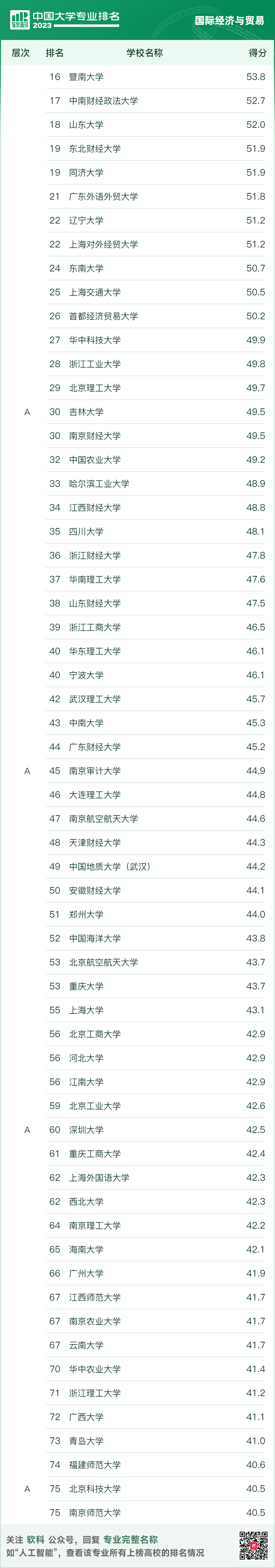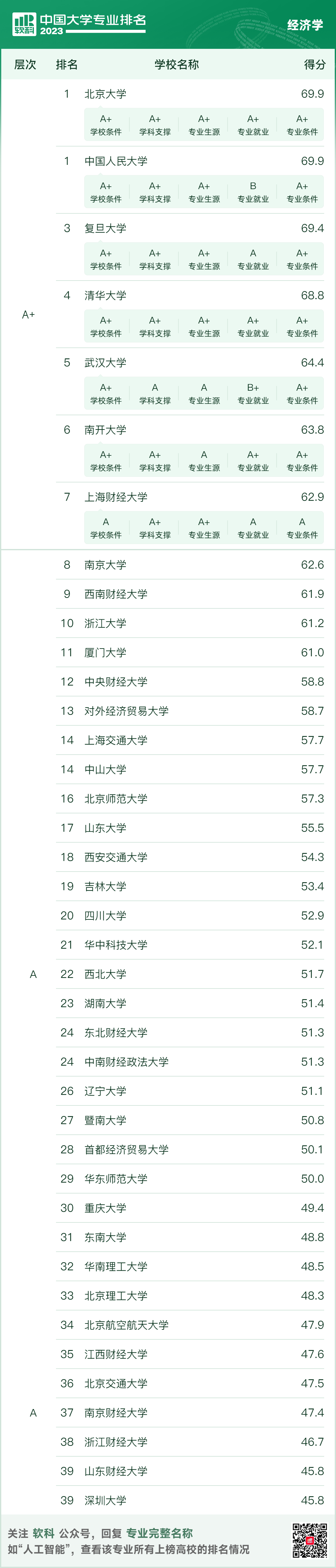 2023年6月15日,高等教育专业评价机构软科正式发布“2023软科中国大学专业排名”。我院数字经济、国际经济与贸易、经济学三个本科专业同时上榜软科A类专业,经济学专业在全国排名第38,在浙江排名第2;国际经济与贸易专业在全国排名第36,在浙江排名第3;数字经济在全国排名第9,在浙江排名第1。