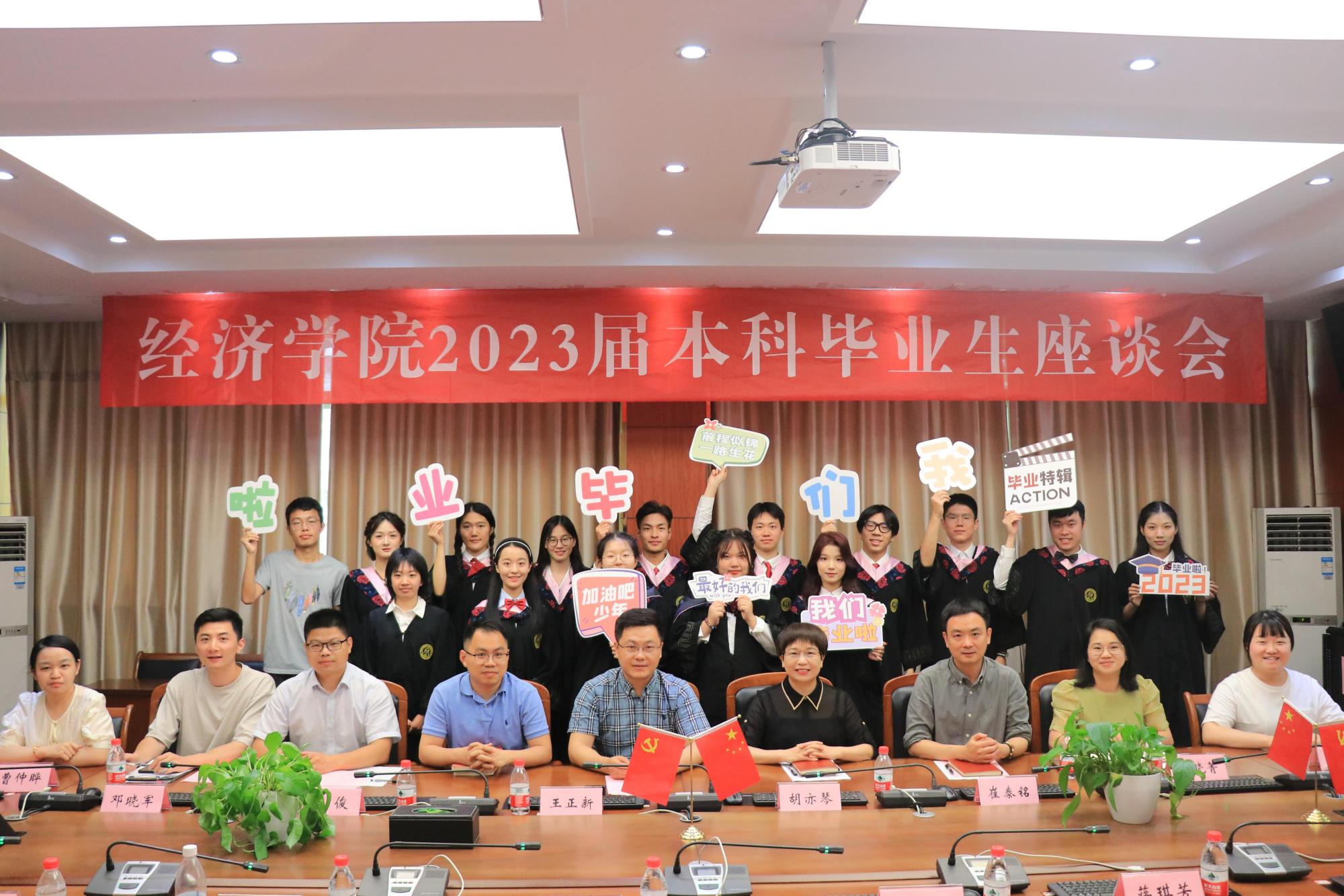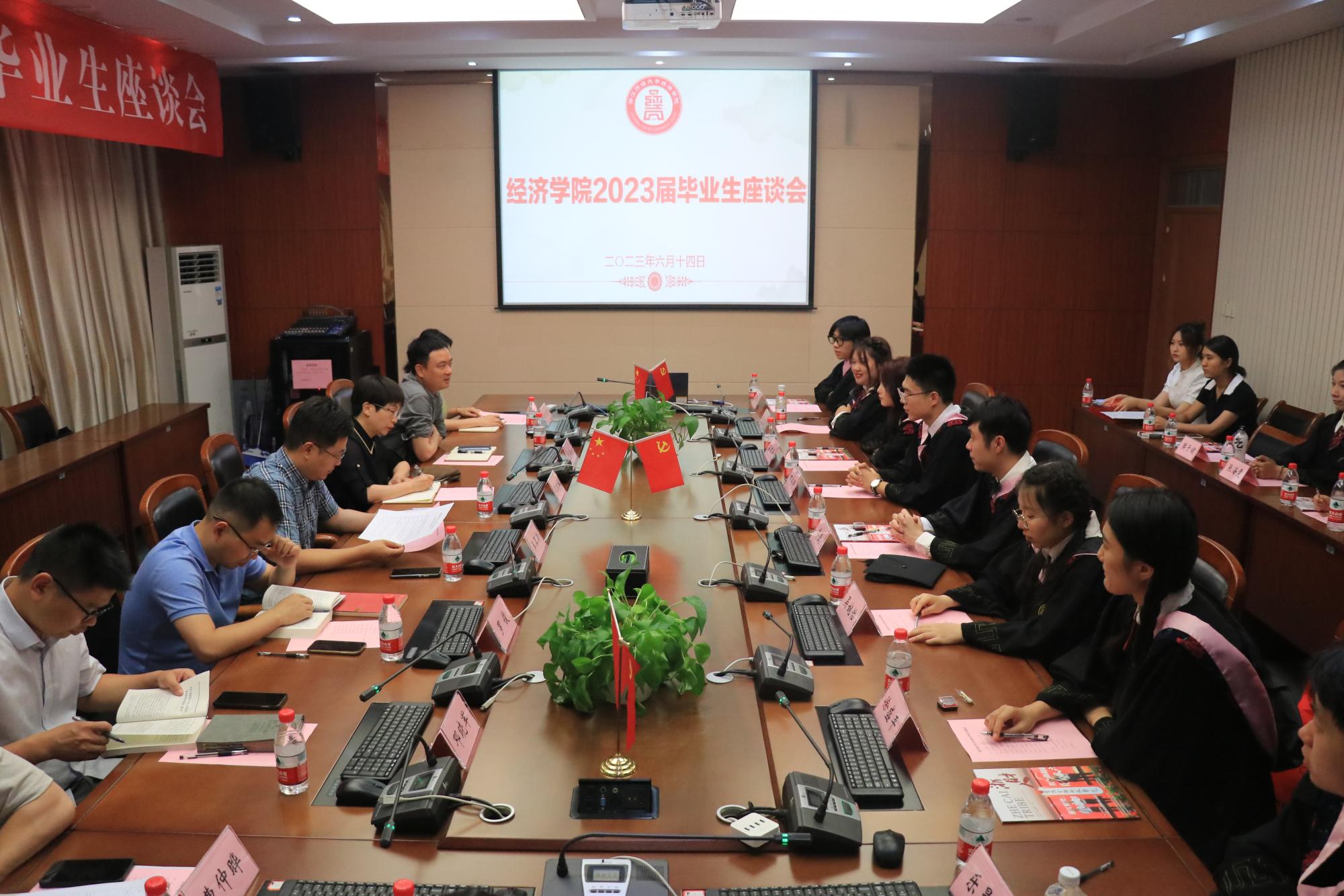 为持续提升教育教学质量和人才培养水平,助推学院高质量建设,6月14日下午,学院召开2023届毕业生座谈会,院长王正新、党委书记胡亦琴、副院长罗俊、邓晓军、党委副书记崔泰铭、教学办主任高晓菁、团委书记曹仲晔、辅导员邓斯怡、陈秋涵,与我院2023届毕业生代表亲切交流。