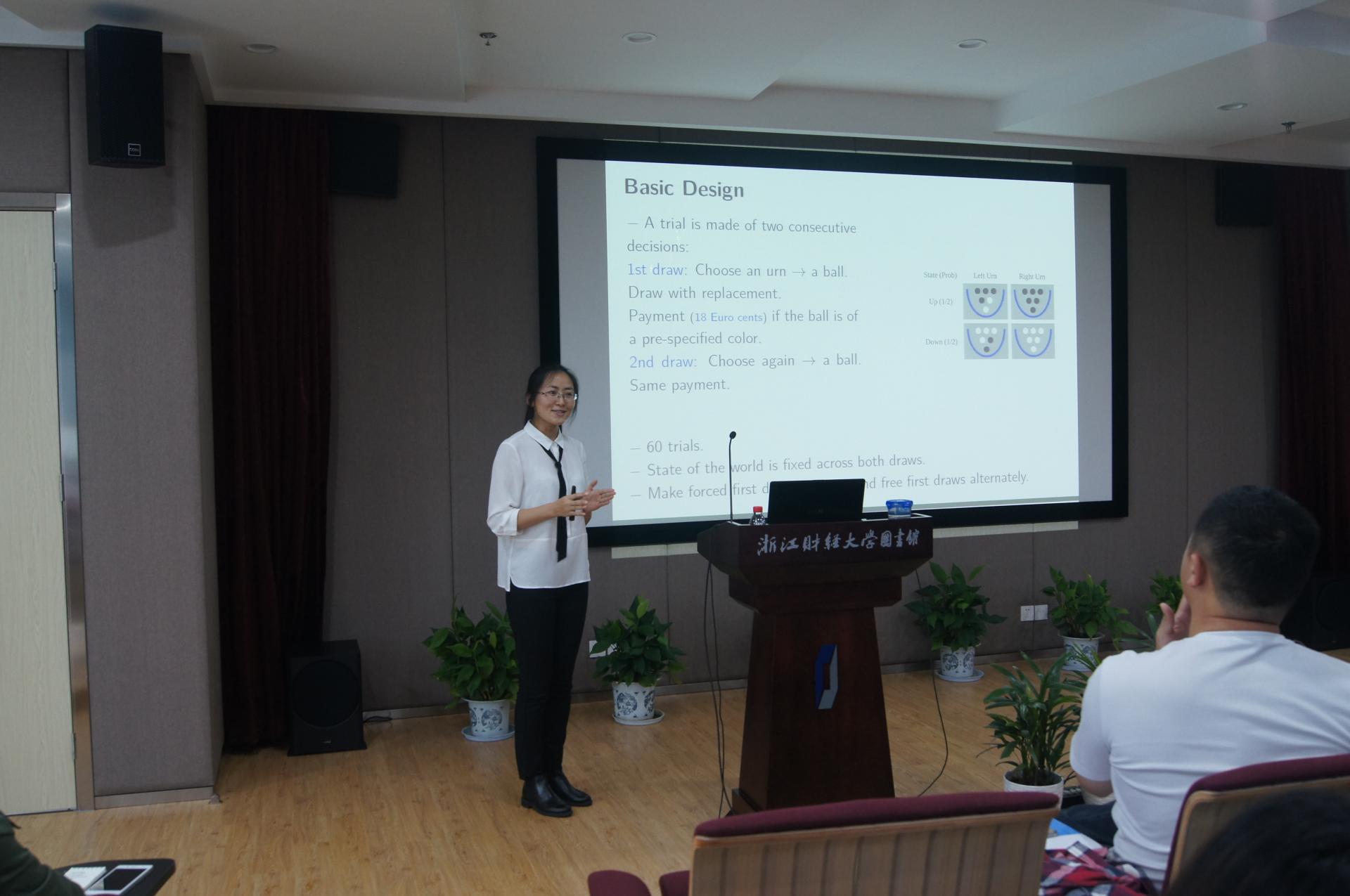 10月21日上午,浙江财经大学思享会•第二期学术微沙龙在图书馆六楼共享空间多功能报告厅举行。本期沙龙主题为Decision making, reinforcement and inertia,由我院李佳慧博士主讲,我院相关专业师生共20余人共同聆听和参与了本期沙龙。