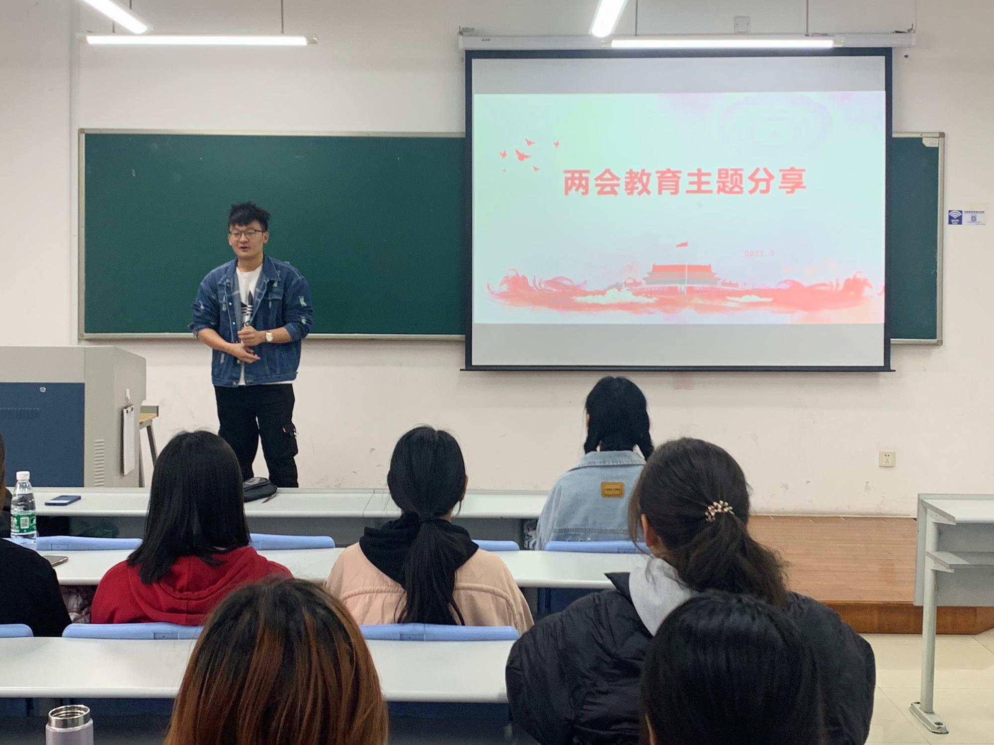 首先,徐盛平带领支部成员学习了2021年政府工作报告,并为大家简单介绍了“两会”上代表委员们提出的议案。通过系统的学习,在场的同学们加深了对“两会”精神的理解,纷纷表示将学习“两会”代表委员们关注民生时事的精神,厚植家国情怀,勇担历史重任。